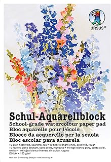 Ursus 7004600 Schul Aquarellblock, hochweiß, DIN A4, 150 g/qm, 10 Blatt, säurefrei, an drei Seiten geleimt, ideal für die Schule oder in der Freizeit