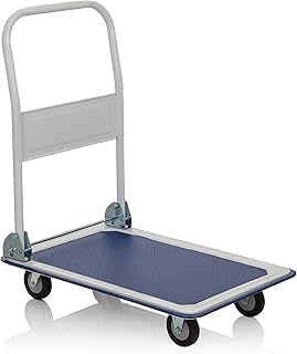 hjh OFFICE 830022 Plattformwagen Carry Metall 73 x 48 cm Transportwagen klappbar, Handwagen bis 150kg belastbar, Blau/Weiß