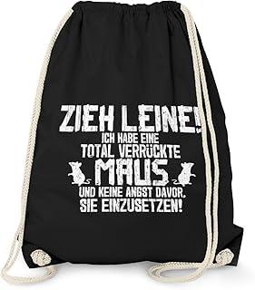 Fashionalarm Turnbeutel - Zieh Leine - verrückte Maus | Fun Rucksack mit Spruch Mäuse Halter Züchter Besitzer Farbmaus Wüsten Rennmaus Springmaus, Farbe:schwarz