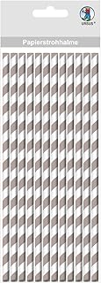 Ursus 56760009 Papierstrohhalme mit Streifen, grau, Größe M, Länge ca. 19,5 cm, Durchmesser ca. 0,8 cm, 16 Stück, biologisch abbaubar, lebensmittelecht, wasserfest, zum Gestalten und Dekorieren