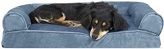 Furhaven Kissen Haustierbett für Hunde und Katzen - Sofa-Stil Kunstfell und Samt Couch Hundebett mit Abnehmbarem, waschbarem Bezug, Harbor Blue, Medium