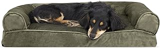 Furhaven Kissen Haustierbett für Hunde und Katzen - Sofa-Stil Kunstfell und Samt Couch Hundebett mit Abnehmbarem, Waschbarem Bezug, Dunkler Salbei, Medium