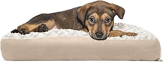 Furhaven Pillow Haustierbett für Hunde und Katzen - Klassisches Kissen Frottee und Wildleder Hundebett Matte mit Abnehmbarem waschbarem Bezug, Ton klein