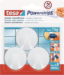 Tesa 57577–00001–01 Powerstrips, klein, selbstklebend, rund, weiß