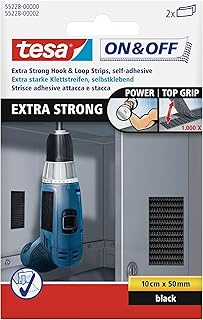 tesa On & Off Extrastarke Klett Klebepads - Selbstklebende Klettstreifen zum Befestigen schwerer Gegenstände, extra stark - Schwarz - 10 cm x 5 cm - 2 Stück
