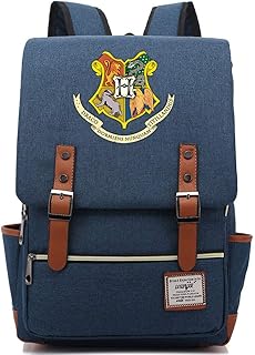 Harry P Rucksack, Hogwarts College Potter Rucksack, Casual Fashion Student Tasche, Gold Reißverschluss Mittel Dunkelblau