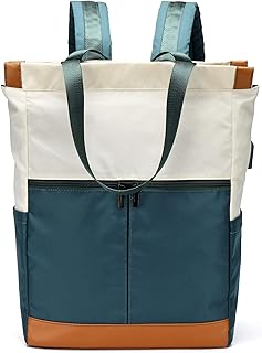 COOLCY Rucksack für Reisen, Laptop, College, Schule, Rucksack, wasserdicht, Nylon, Diebstahlschutz, schlanker und langlebiger Laptoprucksack mit USB-Ladeanschluss Damen Herren Grün weiß grün L