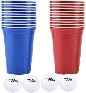 Bier Pong Tassen, Bier Pong Set Bier Pong Trinkspiel Set Bier Pong Tassen-22 Tassen 4 Ping-Pong Bälle(rote Tassen 11 + Blaue Tassen11 + 4 Bälle)