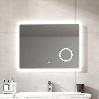 EMKE LED Badspiegel 80x60cm Badspiegel mit Beleuchtung kaltweiß Lichtspiegel Badezimmerspiegel Wandspiegel mit Touchschalter IP44 energiesparend