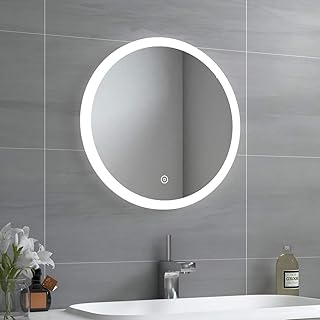 EMKE Badspiegel mit Beleuchtung Badezimmerspiegel LED Spiegel Rund 50 cm Durchmesser 6500K Wandspiegel mit Touchschalter IP44 energiesparend