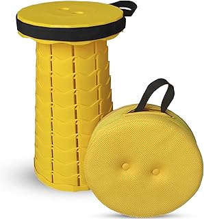 LAMEF Ausziehbarer Klapphocker mit Kissentasche, Tragbarer Hocker mit verstellbarem und zusammenklappbarem Hocker, Teleskop-Hocker für Outdoor, Reisen, Küche und Camping mit 180 kg Tragkraft (Gelb)