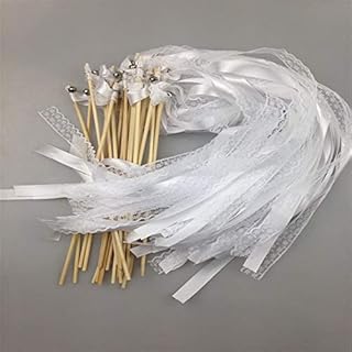 Jiaxingo 30 Stücke Zauberstäbe mit Band Glocken, Spitzen Fee Stick mit Weiß Band für Hochzeit, Weihnachten, Geburtstag, Party, Seide, Spitzenband, mit Glocken