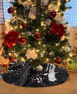 DUOBAO Pailletten-Baumrock 61 cm kleiner runder Baumrock schwarz zu weiß Winter Baumrock Glitzer Weihnachtsbaum Rock für Weihnachten/Thanksgiving/Hochzeit/Neujahr Dekoration