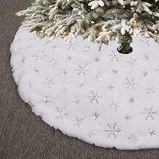 Cneng Weihnachtsbaumrock 122 cm weiß Baumrock doppelschichtig Sackleinen Baumrock für Weihnachten Home Decor Neujahr Party Urlaub Dekoration (Schneeflocke)