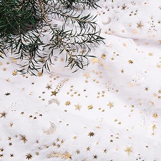 Acdoslow Weihnachtsbaumrock 76,2 cm 91,4 cm 121,9 cm weiß Luxus Kunstfell Baumrock Sterne Plüsch Baumrock für Weihnachtsbaum Bleistifte Baum Gold-78