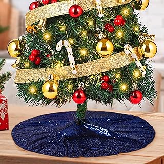 ShinyBeauty Pailletten-Baumrock 61 cm Durchmesser kleiner Weihnachtsbaumrock bestickt glitzernd marineblau Weihnachtsbaum Ornament Weihnachtsdekoration 61 cm Mini-Baumrock für kleine Bleistifte Baum