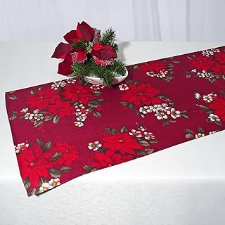 Kamaca Tischdecke Wonderful X-Mas TIME in rot mit Weihnachtssternen EIN HINGUCKER in Winter Advent Weihnachten (Tischläufer 40x90 cm)