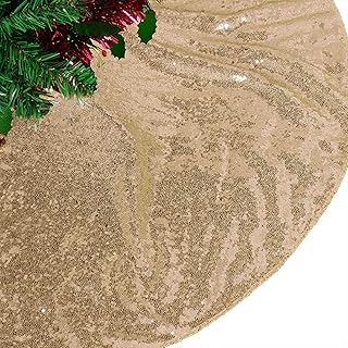 AMZLOKAE Pailletten-Baumrock, 91,4 cm, Champagner-Gold, Weihnachtsbaumrock, Glitzer, Halloween, Baumrock, Weihnachtsbaumrock, Glitzer, Weihnachtsbaumrock, Feiertagsdekorationen, Hellgold, Baumrock Kit
