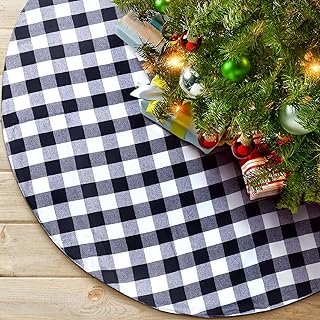 127 cm großer Weihnachtsbaumrock, Büffelkarierter Baumrock mit Klettverschluss, Baumwolle, kariert, rustikaler Baumrock für Weihnachten, Urlaub, Party-Dekorationen (weiß und schwarz)