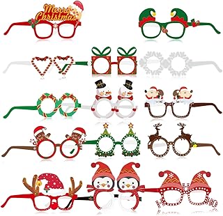 Joyibay Weihnachtsbrillen, 12 Stück Partybrillen Set Kreative Weihnachten Brillen Party Gläser Cartoon Nette Sortierte Kinder Partybrillen Lustige Brille für Partydekoration