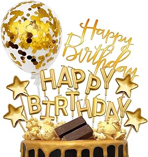 iZoeL Tortendeko Gold Happy Birthday Kerzen Konfetti Luftballon Sterne Cake Topper Kuchendeko Golde Geburtstag Dekoration