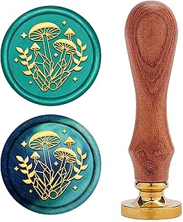 craspire Wachs Siegelstempel Pflanze Vintage Siegelstempel 25mm Abnehmbarer Messingkopf Naturholzgriff Für Umschlag Einladungskarte Verschönerungsbox Paket Dekoration, Pilz