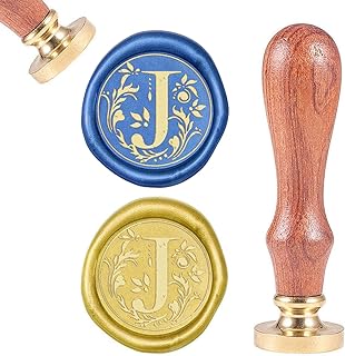 CRASPIRE Retro Alphabet Initialen Wachs Versiegelungsstempel Classic Vintage 26 Buchstaben AZ 25mm Abnehmbarer Messingkopf Holzgriff Für Umschlag Einladung VerschönerungDekoration (Buchstabe J)