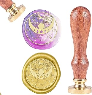 CRASPIRE Wax Seal Stamp Sonne Und Mond, Vintage Wachs Siegelstempel Retro Holzstempel Abnehmbarer Messingkopf Für Hochzeitsumschläge Einladungen Verschönerung Flasche Dekoration Geschenkverpackung