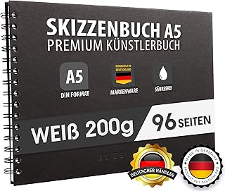 ELES VIDA Skizzenbuch Premium Qualität 200 g/m² mit schwarzer Spiralbindung A5 Querformat – Blattgröße 19,7 x 14 Reißfestes, Nicht ausblutendes, säurefreies Papier Weiß, Sketchbook - aus Deutschland