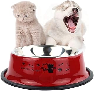 Cxssxling Hundenapf, Hunde Fressnapf Edelstahl Fressnapf in Vielen Farben Größen für Kleine Große Hunde Katzen, Futternapf Katze klein, Hundenapf Hund groß, Katzennapf Edelstahl (34cm, Rot)
