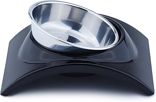 SuperDesign Regenbogengeformter Fressnapf Futternapf aus Edelstahl mit erhoehtem Melaminboden rutschfest Fuer Hunde und Katze, Klein, Schwarz,MEHRWEG Verpackung