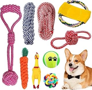 BOZHZO Hundespielzeug Set, Welpenspielzeug Hund unzerstörbar für Zahnreinigung Geeignet, Hergestellt aus Natürlicher Baumwolle interaktives Pet Rope Spielzeug für kleine und mittelgroße Hunde 9 PCS