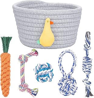 Hundespielzeug aus Seil, Kauspielzeug für kleine Hunde und mittelgroße Hunde, Welpenspielzeug zum Zahnen, robustes und langlebiges Hundespielzeug, Aufbewahrungskorb, 6er-Set