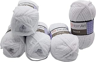 YarnArt Dolce 5 x 100 Gramm Strickwolle, Babywolle, 500 Gramm Wolle Super Bulky (Weiß 741)