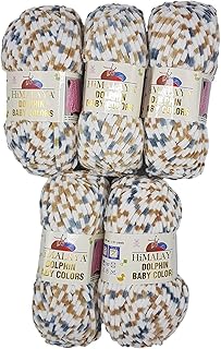 5 x 100 Gramm Strickwolle Himalaya Dolphin Baby Colours mehrfarbig, 500 Gramm Wolle super bulky (weiß beige grau 80416)